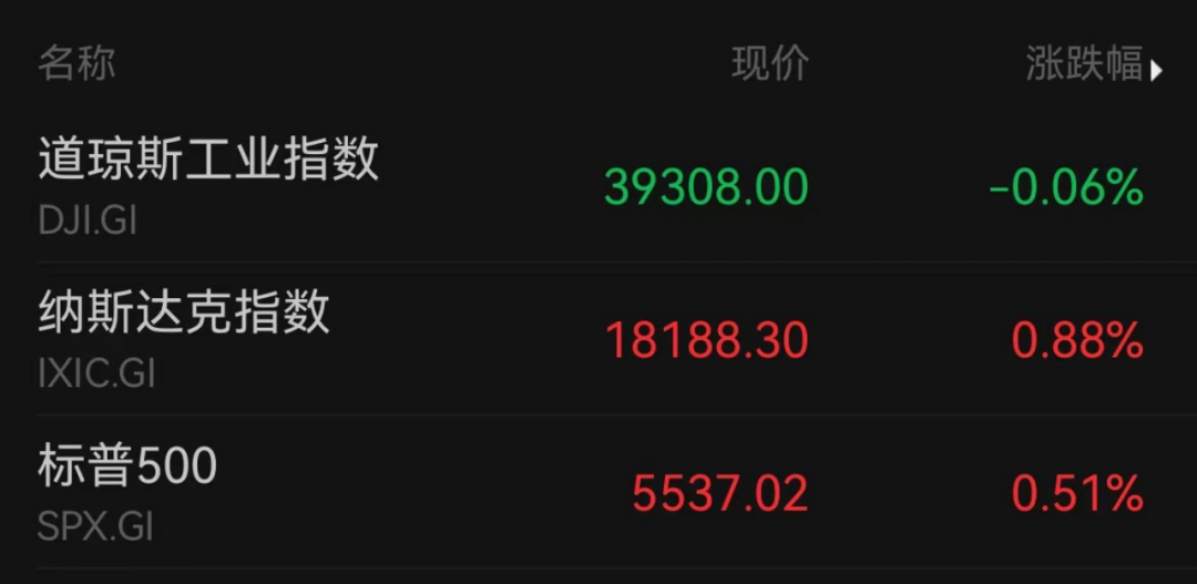 当地时间7月3日周三,美股三大股指涨跌不一。截至收盘,道指跌0.06%,纳指涨0.88%,标普500指数涨0.51%。