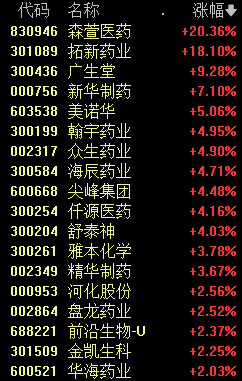 医药股全面走强