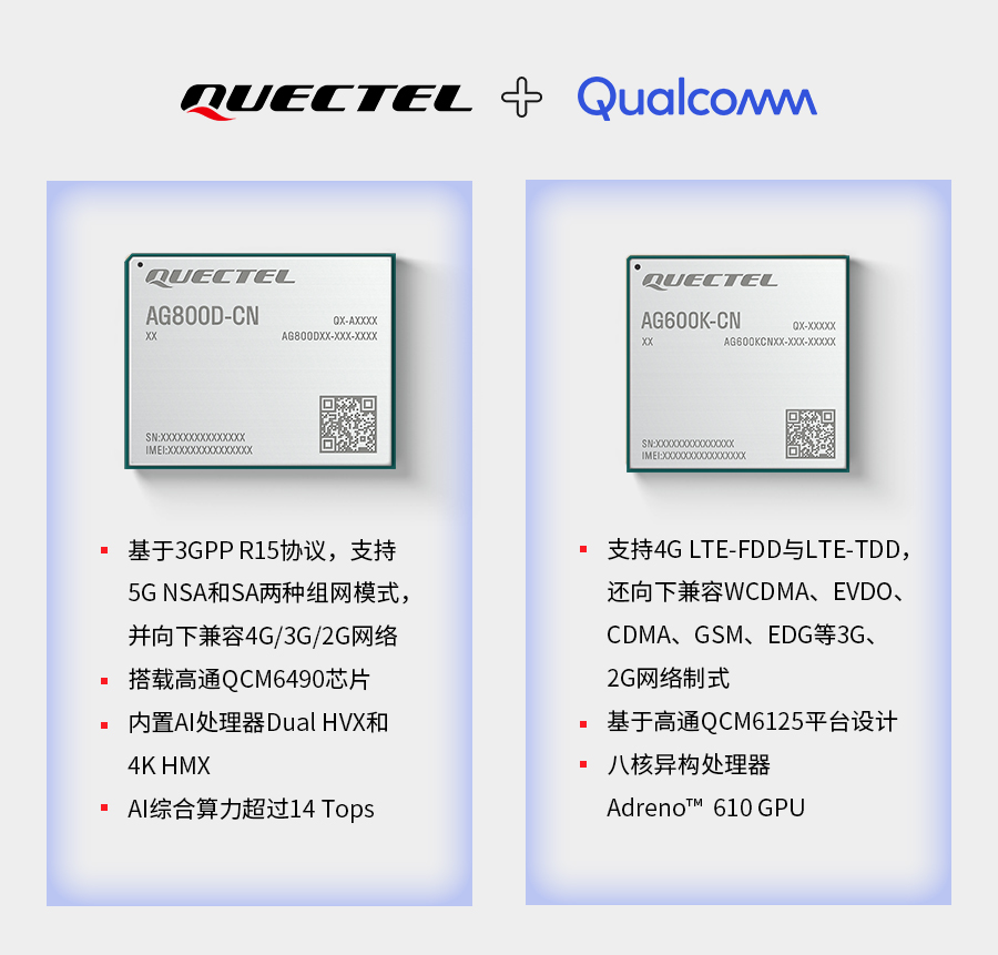 AG800D是一款车载5G安卓智能模组,符合IATF 16949及APQP、PPAP等汽车行业质量管理流程要求。该模组支持5G网络,基于3GPP R15协议,支持5G NSA和SA两种组网模式,并向下兼容4G/3G/2G网络。