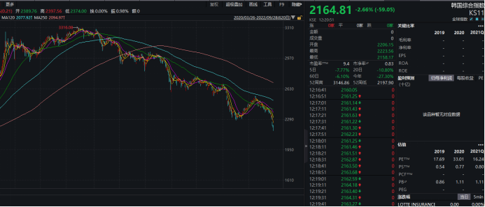周三亚太股市普遍重挫,日经225指数,韩国综合指数均大跌,韩国综合指数盘中创最近26个月新低。